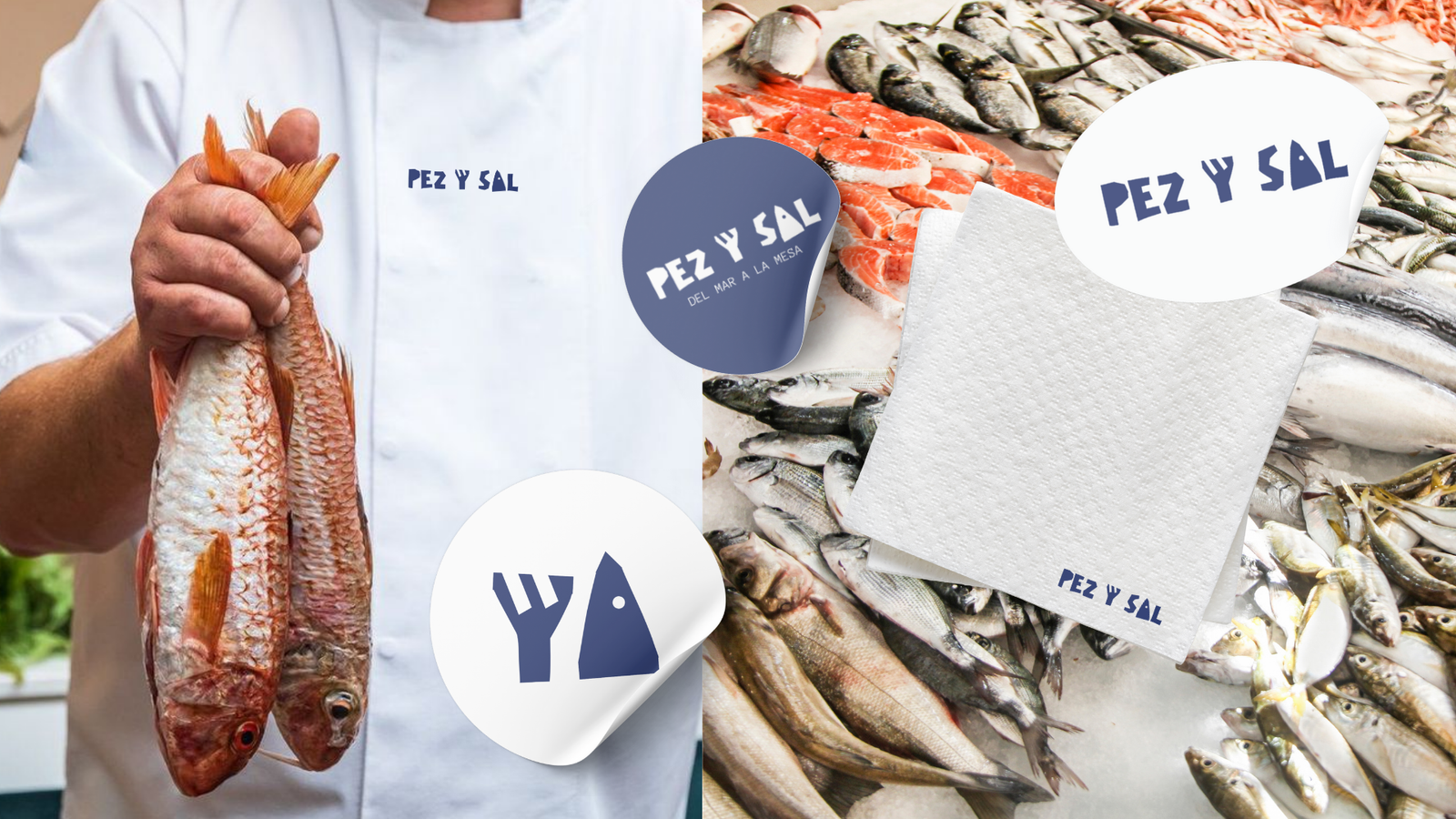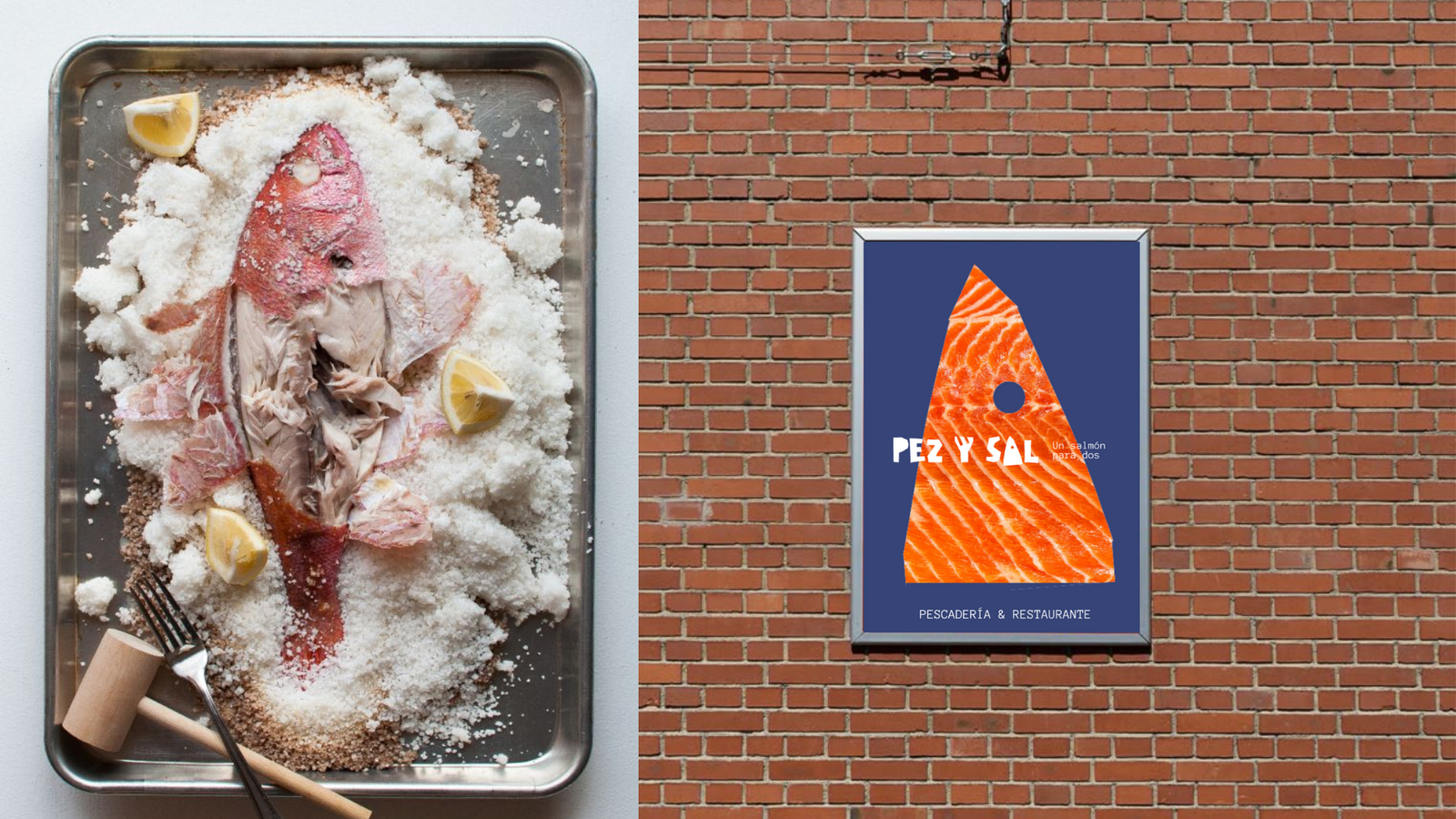 Inspirado en la primera lección que aprende todo buen cocinero, “no maltratar el ingrediente”, Pez y Sal ofrece una experiencia culinaria integral. El cliente elige el pez. Luego decide: llevarlo o comerlo allí mismo. Si elige quedarse, lo cocinan al momento, con un gesto mínimo y solo sal. Y directo a la mesa. La identidad visual, un sistema gráfico limpio y claro. Líneas orgánica, colores contenidos y una composición que pone en valor lo natural. Porque cuando el producto es bueno, menos es más.